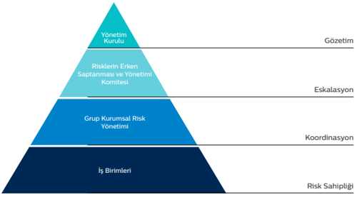 Üst yönetim ve risk sahipleri başta olmak üzere, Grubumuzun tüm organizasyonel seviyeleri Kurumsal Risk Yönetimi ve İç Kontrol uygulamalarımıza aktif katkı sağlamaktadır.