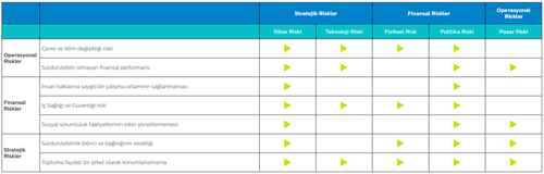 Bu bağlamda Sürdürülebilirlik Riskleri Kök Sebepler analizi yaparak sürdürülebilirlik ile ilgili risklerimizi belirliyoruz.