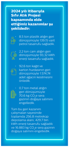 2019 yılından bu yana ofislerimizin tamamında sürdürdüğümüz Sıfır Atık Projesi kapsamında, çalışanlarımızın günlük tüketim alışkanlıklarını çevreye duyarlı hale getirmek için çalışmalar yürütüyoruz. Proje kapsamında; atığın oluşumundan bertarafına kadar olan tüm süreci, insan sağlığına ve çevreye zarar vermeyecek şekilde, teknik ve idari standartlara uygun olarak yönetiyoruz. Geri kazanım, geçici depolama ve bertaraf işlemlerinin tamamı çevre dostu bir yaklaşımla ele alınıyor.