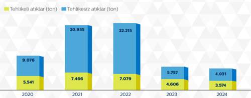 Not: Son iki yılda atık miktarımızdaki düşüş, önceki yıllarda yapılan yoğun yatırımlar neticesinde hurda ekipman ve hurda malzeme miktarının azalmasından kaynaklanmaktadır.